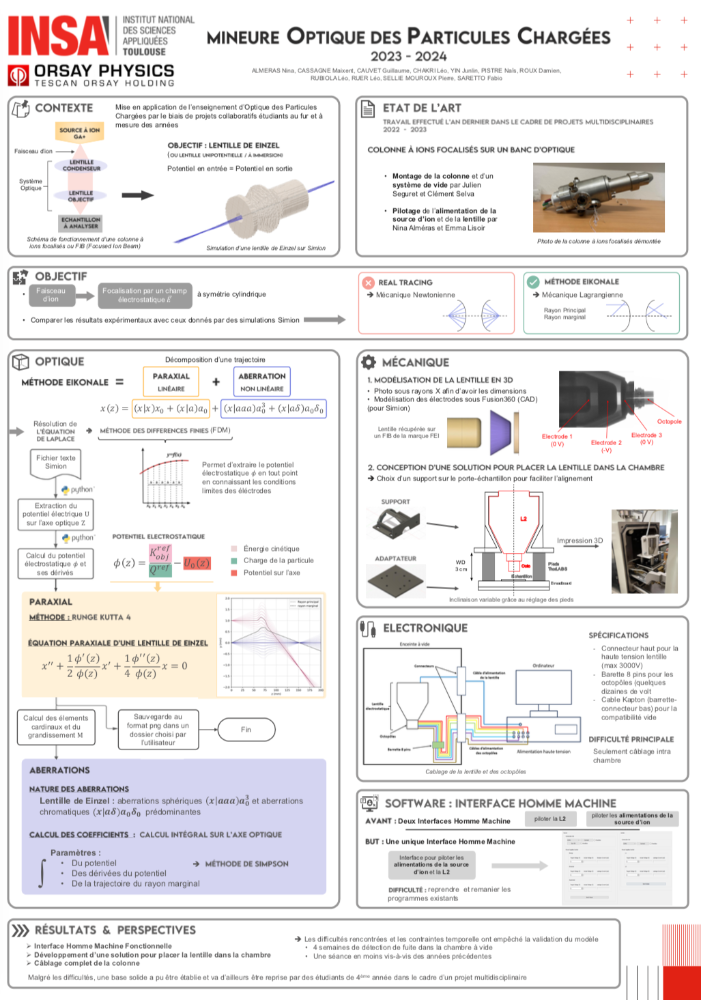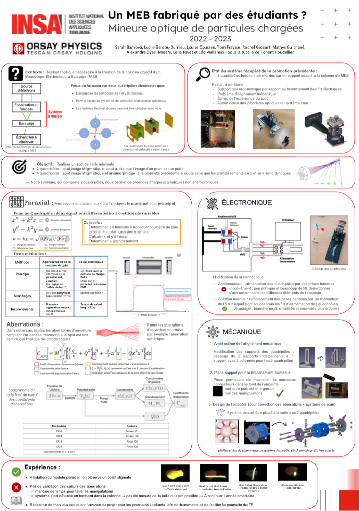 Each year, students carry out an optics project and present it to other students, professors and industry professionals (see the page about educational objectives). This presentation is typically done around a poster. We have included the posters from different years below, starting from the promotion 2022-2023, and we will add to this section each year the new poster highlighting the ingenious achievements of our students.